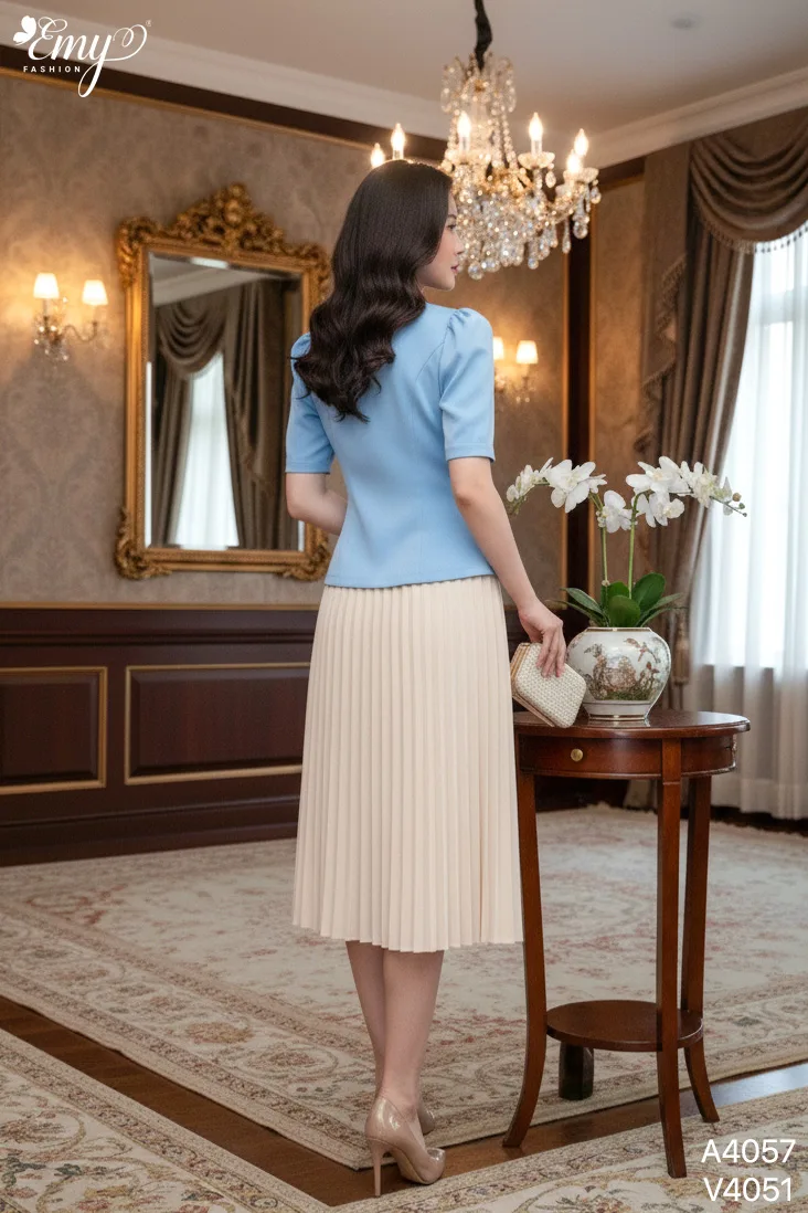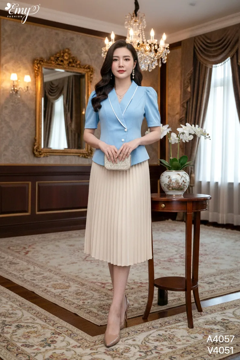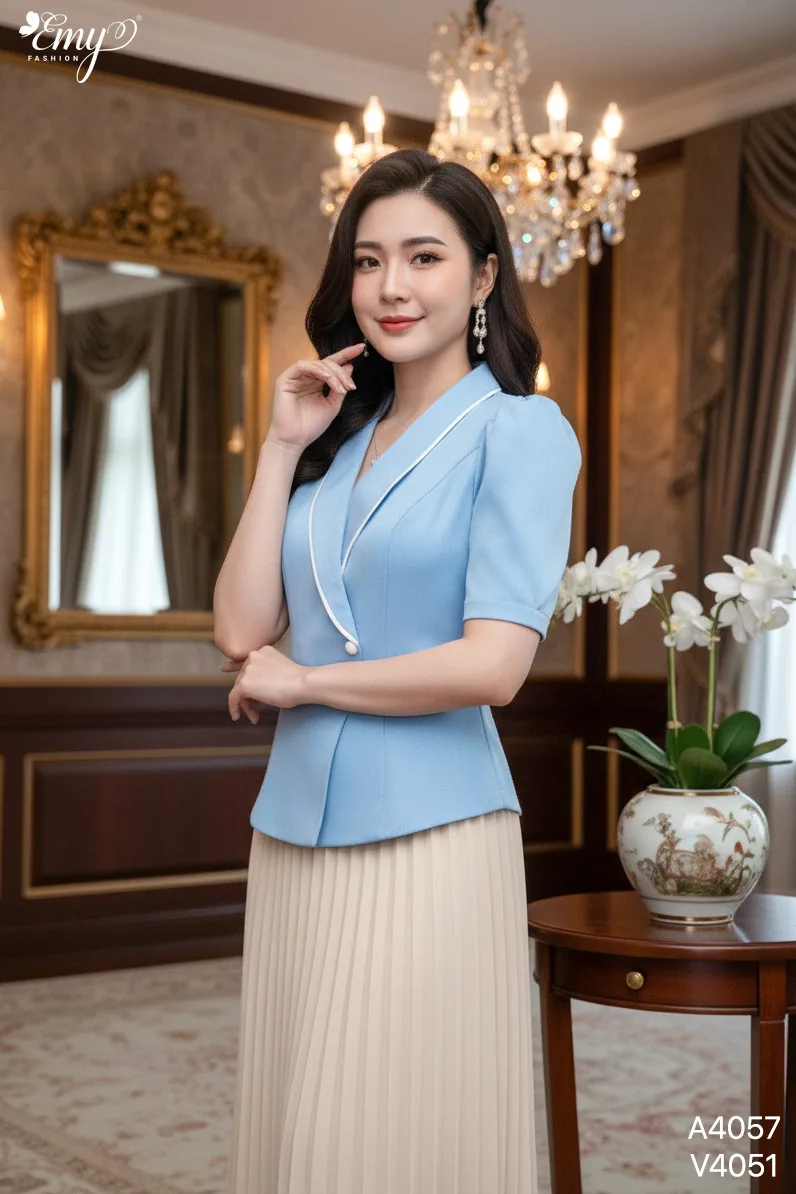 Thông Tin Sản Phẩm A4057 Áo Cổ Đắp Viền Le Xanh Biển