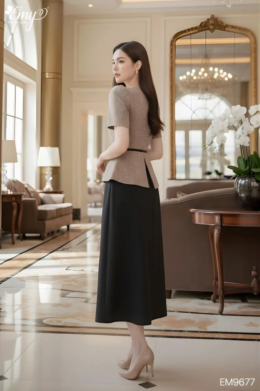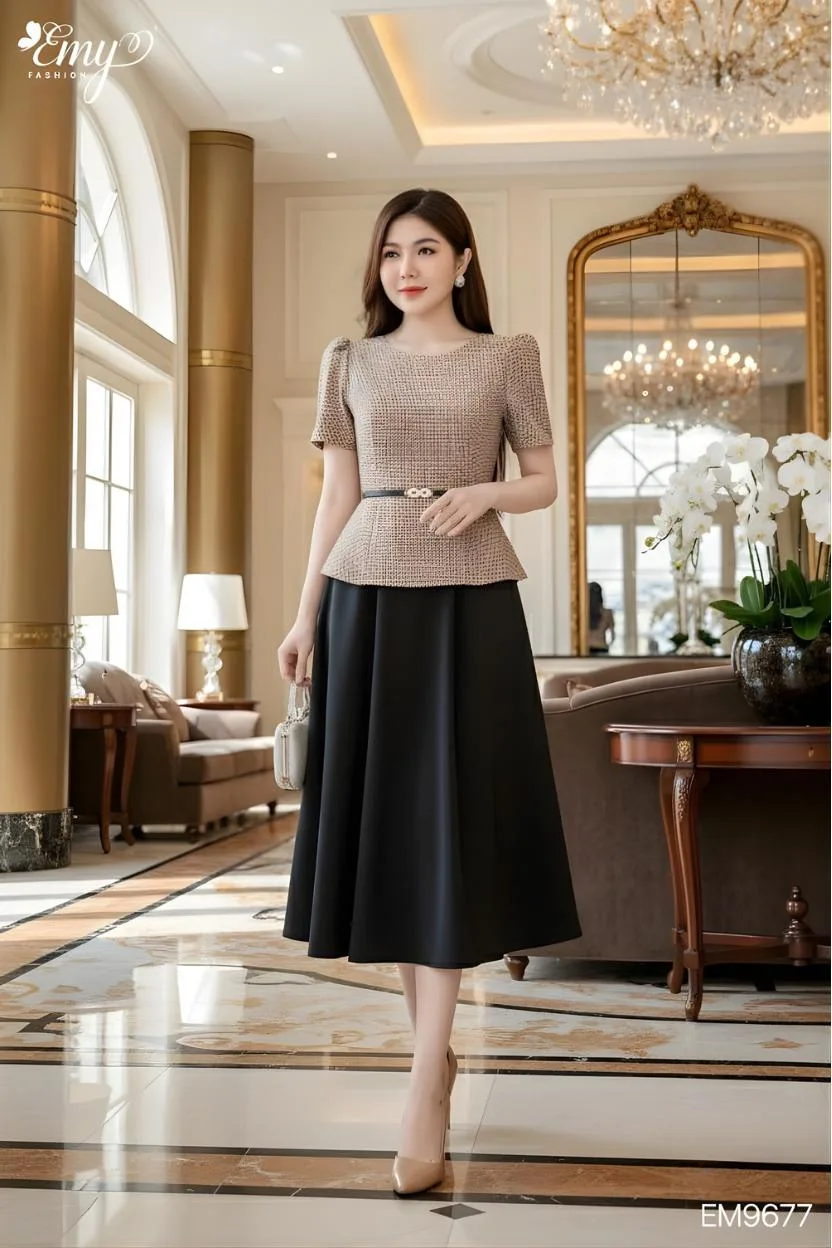 Chiếc đầm xòe caro nhí nâu kem 9677 là sự kết hợp hài hòa giữa phong cách cổ điển thanh lịch và hiện đại thời thượng. Thiết kế với phần áo caro nhí nâu kem nhẹ nhàng, phối cùng tùng đen sang trọng, mang đến vẻ ngoài vừa duyên dáng, vừa chuyên nghiệp, phù hợp cho cả công sở lẫn những buổi gặp gỡ quan trọng.